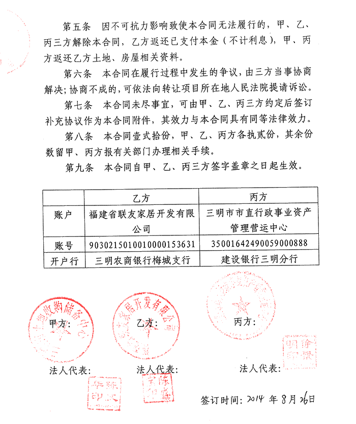 2015年8月24日,联友公司法定代表人陈浩唯在三明农商银行查账中发现,陈文华在其任职三明市国土资源局局长期间,严重违法乱纪、不正确履行职责,没有对三明政府财政支付的2亿多元收储款,进行监管。三明政府财政支付的2亿多元收储款,一分钱没有按《收储合同》约定,经指定的三明建行银行账号,转账汇入三明农商银行监管账号,去向不明。